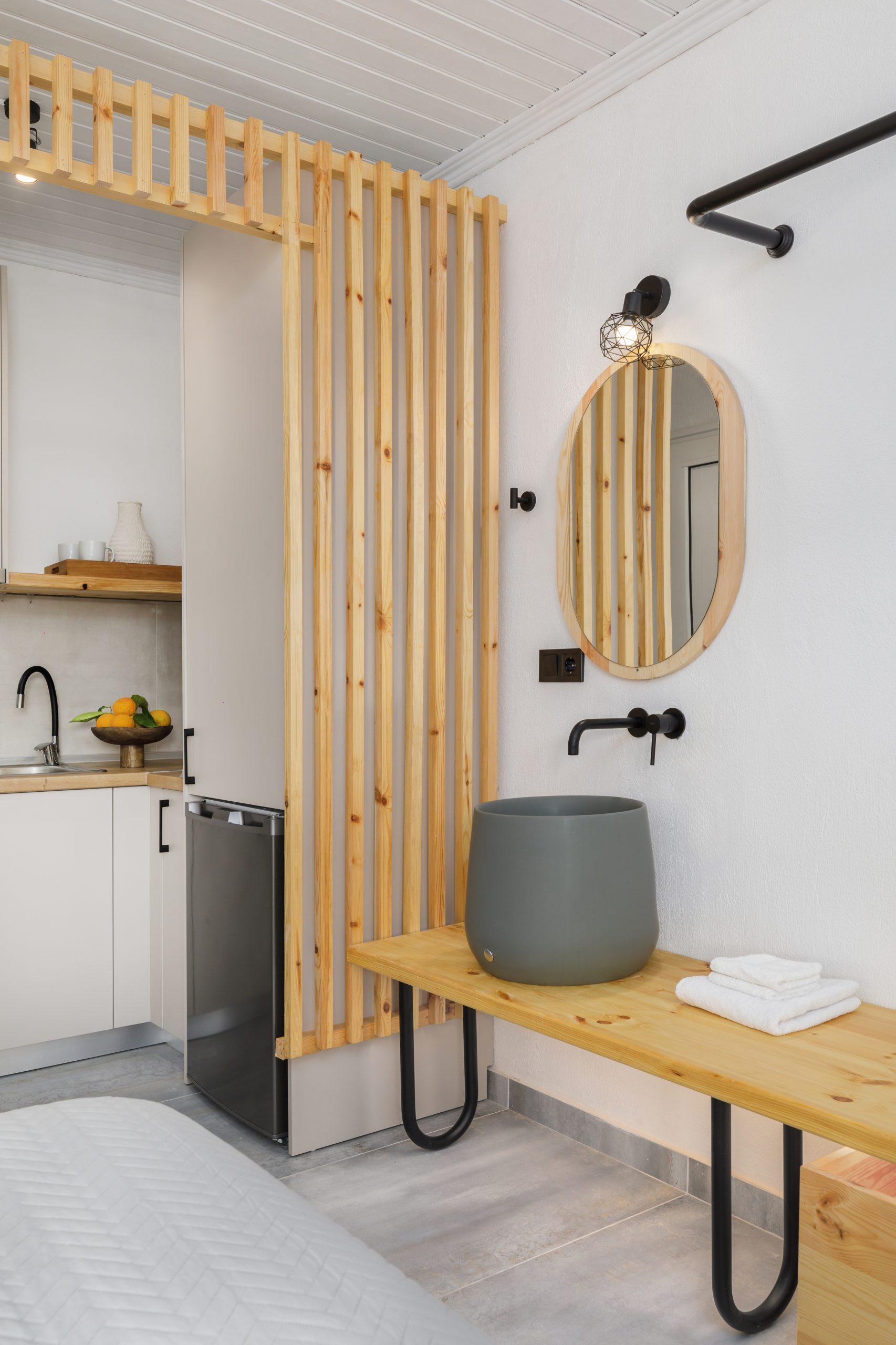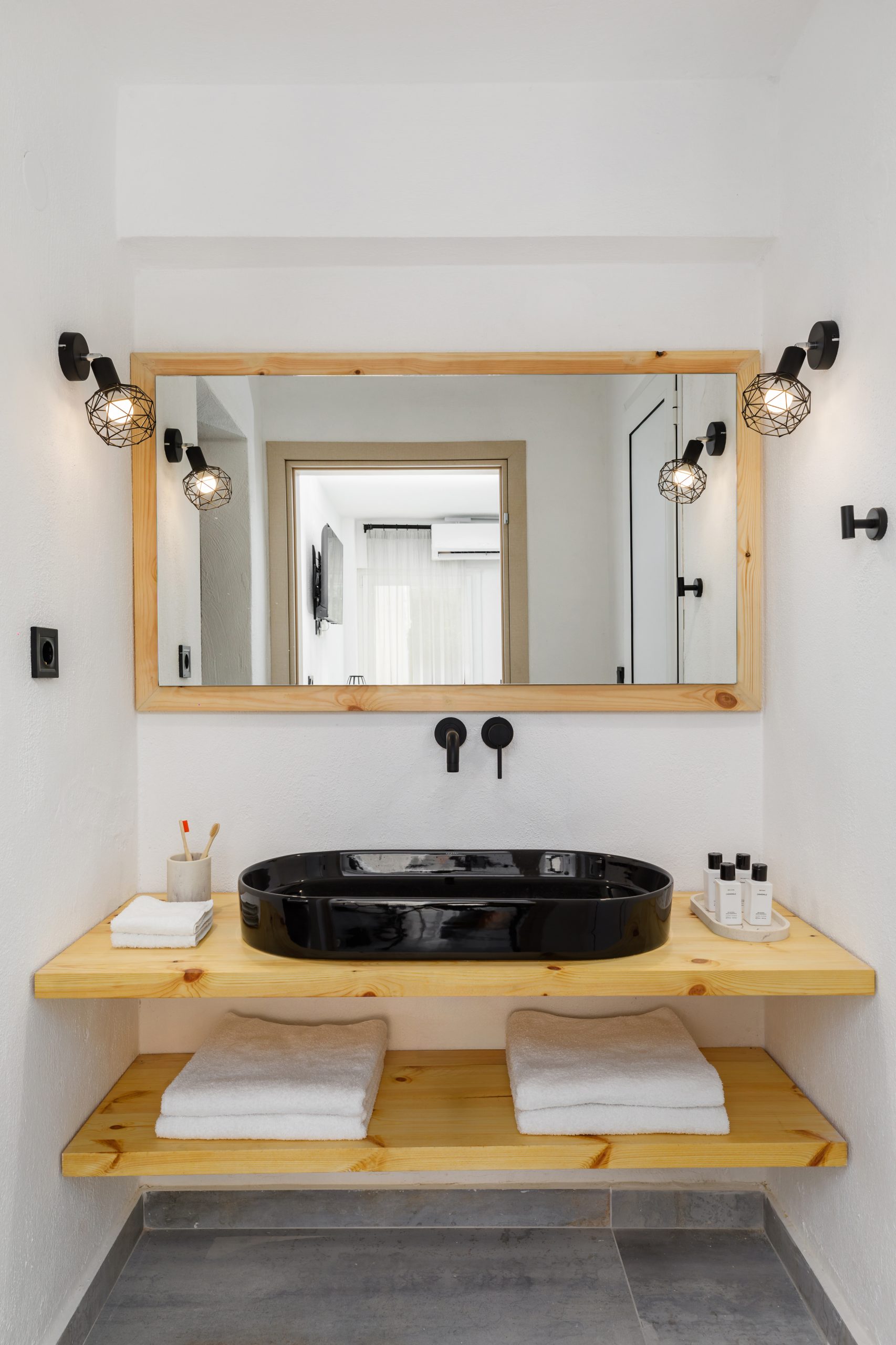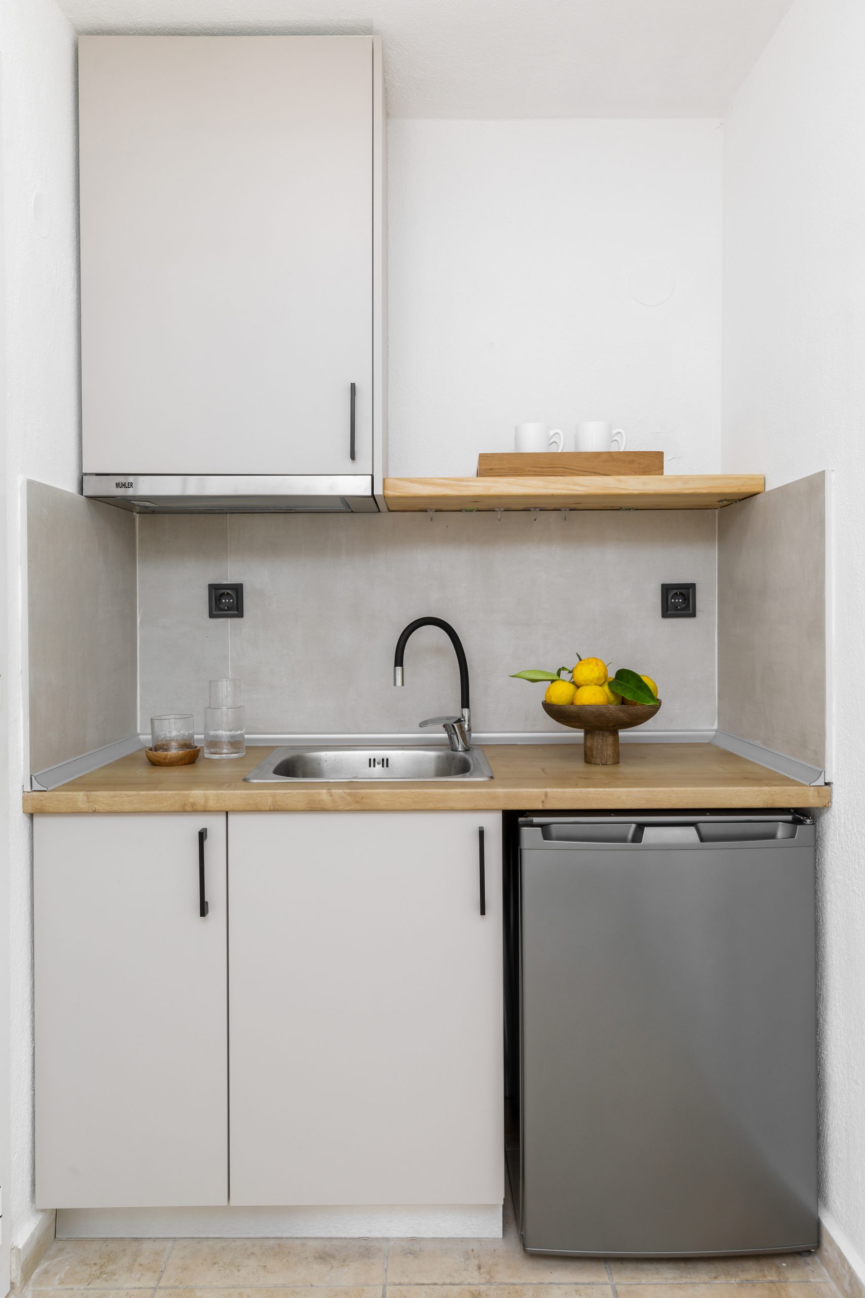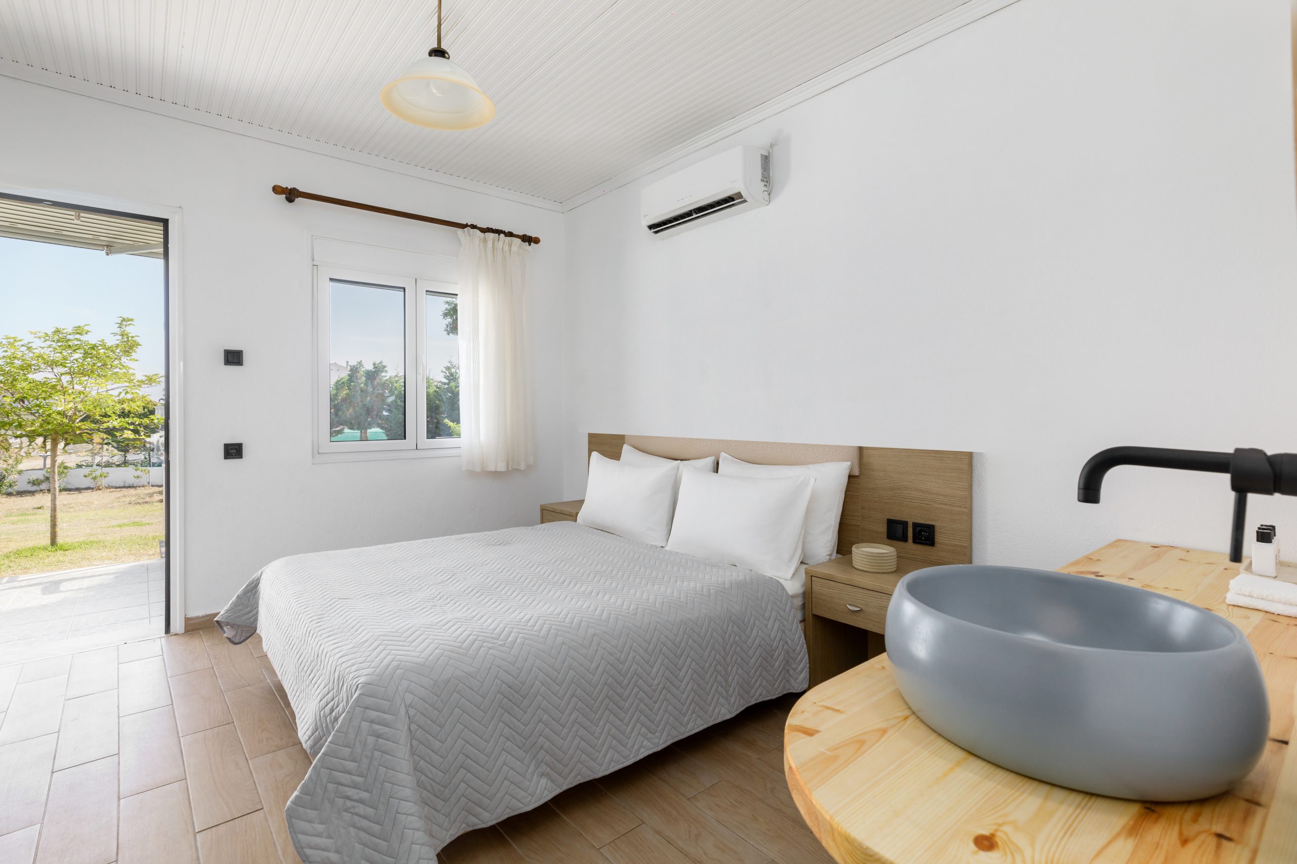 The rooms are newly renovated and feature a modern, minimalist design that combines traditional Greek island architecture with the simplicity and elegance of contemporary interiors. Each room is air-conditioned and equipped with a TV, bathroom, kitchenette with the basic equipment and comfortable balconies with dining tables.